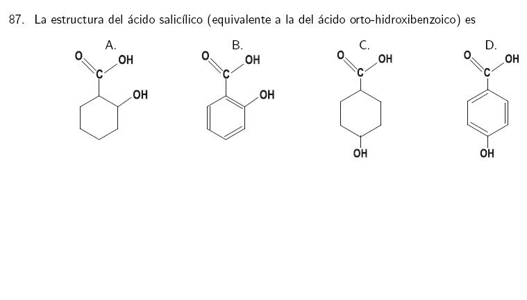 La estructura del ácido salicílico equivalente a la del ácido orto-hidroxibenzóico es: